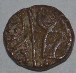 Obverse Horseman to the left. Man on the horseback and flagpole at the back of horse. Reverse Couchant bull facing right and hump on the top right.