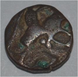 Obverse Horseman to the left. Man on the horseback and flagpole at the back. Reverse Couchant bull facing right and traces of legend on the top.