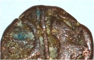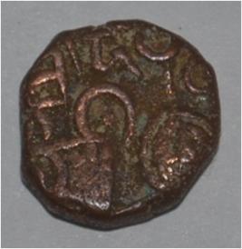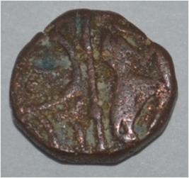 Obverse Horseman to the left. Man on the horseback and flagpole at the back of horse. Reverse Couchant bull facing right and traces of legend on the top.
