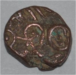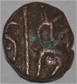 Obverse Horseman to the left. Man on the horseback and flagpole at the back of horse. Reverse Couchant bull facing right and traces of legend on the top.