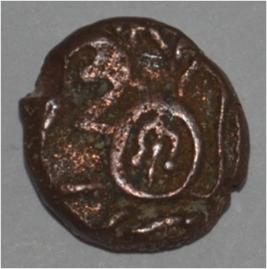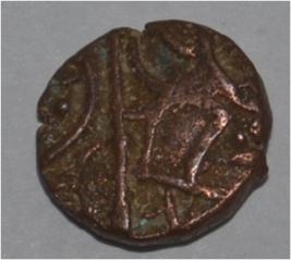 Obverse Horseman to the left. Man on the horseback and flagpole at the back of horse. Reverse Couchant bull facing right and hump on the top right.