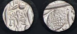 | Description / विवरण | Descrpn./Obv In the centre, a chhatra with Sa and Ta in Gurumukhi script on the left and right of its shaft; traces of the Persian legend seen on the obverse of the bigger Nanakshahi coins of Amritsar mint are also seen. Descrpn./Rev Big peepal leaf and traces of the Persian legend seen on the reverse of the bigger Nanakshahi coins of Amiritsar mint - Shri Amritsarjiv zarb [VS Year] Takht maimanat julus manus Akal Bakht. Especially traces of alif of Akal and te of Takht and maimanat are seen |