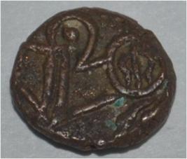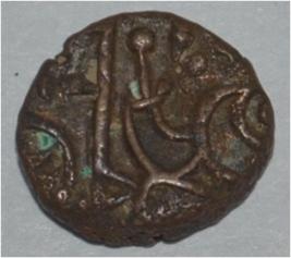 Obverse Horseman to the left. Man on the horseback and flagpole at the back of horse. Reverse Couchant bull facing right and hump on the top right.