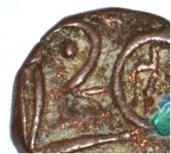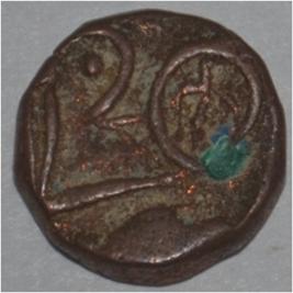 Obverse Horseman to the left. Man on the horseback and flagpole at the back of horse. Reverse Couchant bull facing right and hump on the top right.