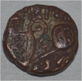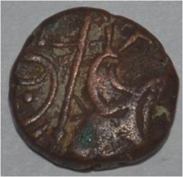 Obverse Horseman to the left. Man on the horseback and flagpole at the back of horse. Reverse Couchant bull facing right and traces of legend on the top.