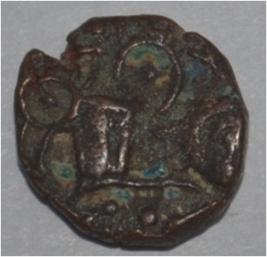 Obverse Horseman to the left. Man on the horseback and flagpole at the back. Reverse Couchant bull facing right and hump on the top.