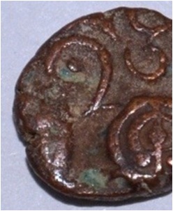 Obverse Horseman to the left. Man on the horseback. Reverse Couchant bull facing right and traces of legend on the top.