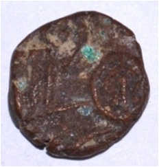 Obverse Horseman to the left. Man on the horseback and flagpole at the back of horse. Reverse Couchant bull facing right and hump on the top.