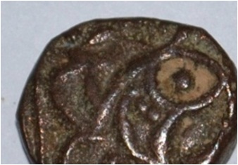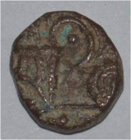 Obverse Horseman to the left. Man on the horseback. Reverse Couchant bull facing right and hump on the top.