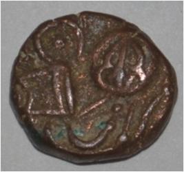 Obverse Horseman to the left. Man on the horseback and flagpole at the back of horse. Reverse Couchant bull facing right and hump on the top.