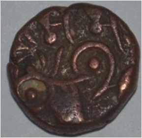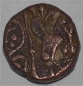 Obverse Horseman to the left. Man on the horseback and flagpole at the back of horse. Reverse Couchant bull facing right and traces of legend on the top.