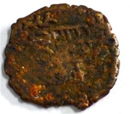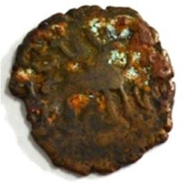 Coin in irregular shape. Obverse Deer at the centre and traces of legend above. Reverse Arched hill with umbrella at the centre, tree in railing in left and nandi pada on the top.