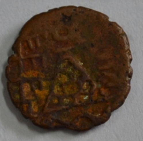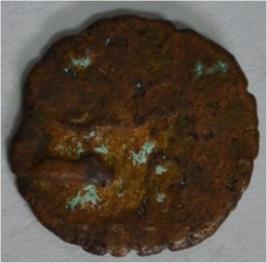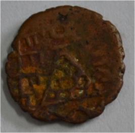 Coin in irregular shape. Obverse Deer at the lower right and facing left and traces of legend on the top. Reverse Tree in railing with three horizontal branches with short vertical leaves, ten arched hill with umbrella at the centre.
