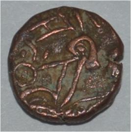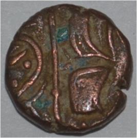 Obverse Horseman to the left. Man on the horseback and flagpole at the back of horse. Reverse Couchant bull facing right and traces of legend on the top.
