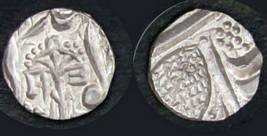 | Description / विवरण | Descrpn./Obv In the centre, a chhatra with Sa and Ta in Gurumukhi script on the left and right of its shaft; traces of the Persian legend seen on the obverse of the bigger Nanakshahi coins of Amritsar mint are also seen. Descrpn./Rev Big peepal leaf and traces of the Persian legend seen on the reverse of the bigger Nanakshahi coins of Amiritsar mint - Shri Amritsarjiv zarb [VS Year] Takht maimanat julus manus Akal Bakht. Especially traces of alif of Akal and te of Takht and maimanat are seen |