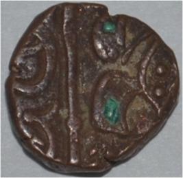 Obverse Horseman to the left. Man on the horseback and flagpole at the back of horse. Reverse Couchant bull facing right and traces of legend on the top.