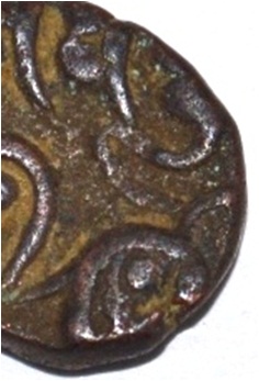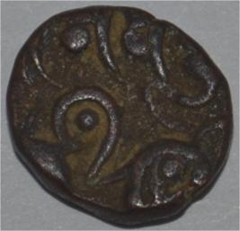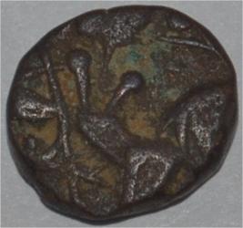 Obverse Horseman to the left. Man on the horseback and flagpole at the back of horse. Reverse Couchant bull facing right and traces of legend on the top.