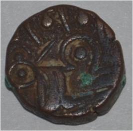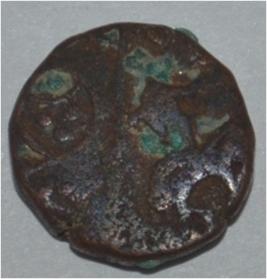 Obverse Horseman to the left. Man on the horseback and flagpole at the back of horse. Reverse Couchant bull facing right and traces of legend on the top.