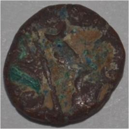 Obverse Horseman to the left. Man on the horseback and flagpole at the back. Reverse Couchant bull facing right and traces of legend on the top.