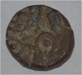 Obverse Horseman to the left. Man on the horseback. Reverse Couchant bull facing right and traces of legend on the top.