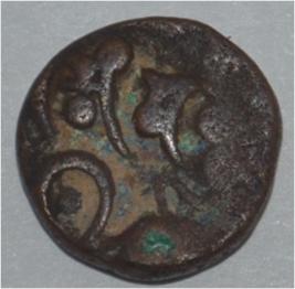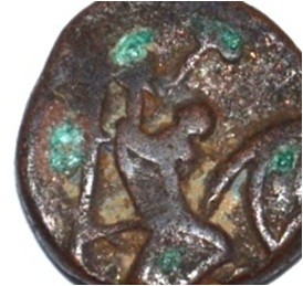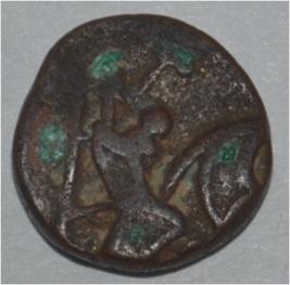 Obverse Horseman to the left. Man on the horseback and flagpole at the back of horse. Reverse Couchant bull facing right and traces of legend on the top.