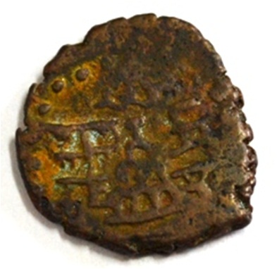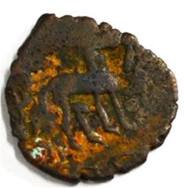Coin in irregular shape. Obverse Deer at the centre and facing left. Reverse Tree in railing on the right, six arched hill with umbrella at the centre, nandi pada above and triangle headed on the left and swastika above it. Dotted border on top right.