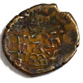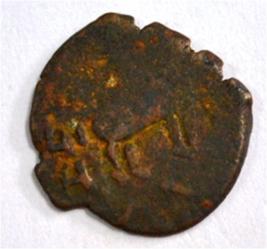 Coin in irregular shape. Obverse Deer at the centre and traces of legend in semi-circle. Reverse Triangle headed on the right and swastika above it, arched hill with umbrella at the centre and nandi pada on the top.