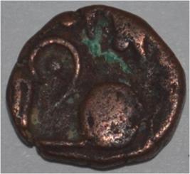 Obverse Horseman to the left. Man on the horseback and flagpole at the back of horse. Reverse Couchant bull facing right and hump on the top right.