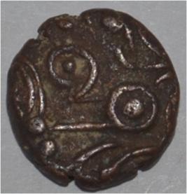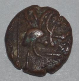 Obverse Horseman to the left. Man on the horseback and flagpole at the back of horse. Reverse Couchant bull facing right and hump on the top right.