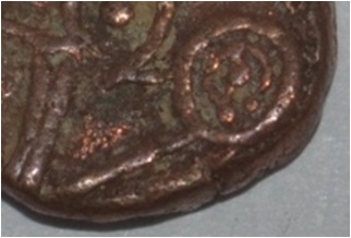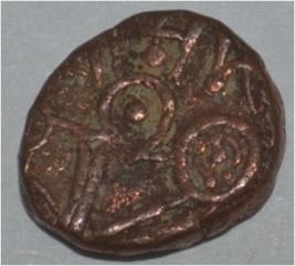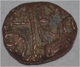 Obverse Horseman to the left. Man on the horseback and flagpole at the back of horse. Reverse Couchant bull facing right and traces of legend on the top.
