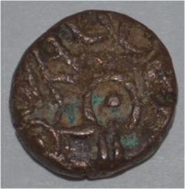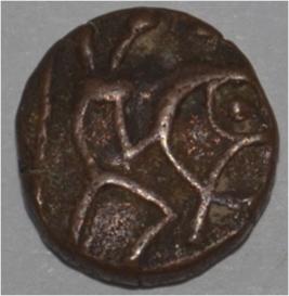 Obverse Horseman to the left. Man on the horseback and flagpole at the back of horse. Reverse Couchant bull facing right and traces of legend on the top.