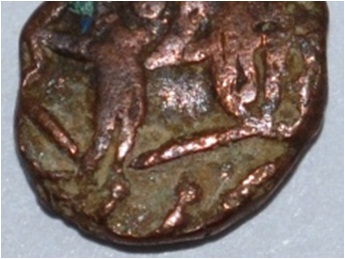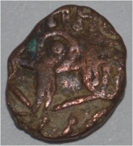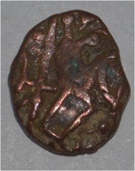 Obverse Horseman to the left. Man on the horseback and flagpole at the back of horse. Reverse Couchant bull facing right and traces of legend on the top.