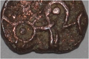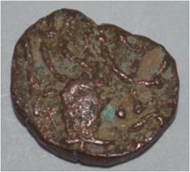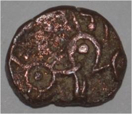 Obverse Horseman to the left. Man on the horseback and flagpole at the back. Reverse Couchant bull facing right and traces of legend on the top.