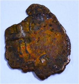 Coin in irregular shape. Obverse Deer on the right and facing left. Traces of legend at the bottom. Reverse Tree in railing with three horizontal branches, each with short vertical leaves in left and nandi pada on the top.