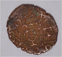 Coin in irregular shape. Obverse Deer at the left and brahmi legend in semi-circle. Reverse Six arched hill with umbrella at the centre, wavy line below, tree branches in left and nandi pada on the top left.