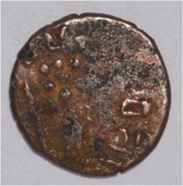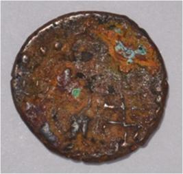 Obverse Six headed male Kartikeya standing and facing. Sakti in right hand and left hand on hip. Traces of legend in left side. Reverse Female Shashthi standing at the centre, tree in railing with horizontal branches on the left.