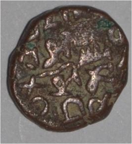 Obverse Horseman to the left. Man on the horseback and flagpole at the back. Reverse Traces of legend on the whole side.