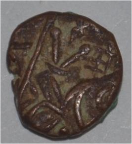 Obverse Horseman to the left. Man on the horseback and flagpole at the back. Reverse Traces of legend on the whole side.