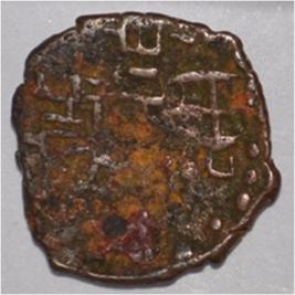 Coin in irregular shape. Obverse Deer at the centre and facing female figure with upraised right hand. Brahmi legend in semi-circle. Reverse Swastika in right, arched hill with umbrella at the centre, tree in railing in left and nandi pada on the top.