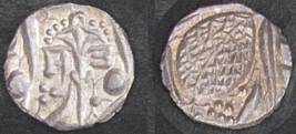 | Description / विवरण | Descrpn./Obv In the centre, a chhatra with Sa and Ta in Gurumukhi script on the left and right of its shaft; traces of the Persian legend seen on the obverse of the bigger Nanakshahi coins of Amritsar mint are also seen. Descrpn./Rev Big peepal leaf and traces of the Persian legend seen on the reverse of the bigger Nanakshahi coins of Amiritsar mint - Shri Amritsarjiv zarb [VS Year] Takht maimanat julus manus Akal Bakht. Especially traces of alif of Akal and te of Takht and maimanat are seen |