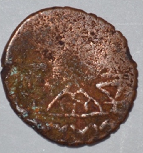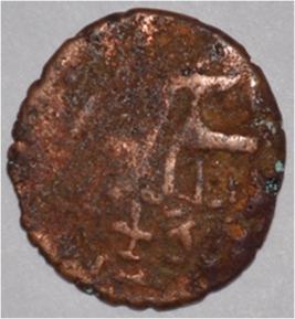 Coin in irregular shape. Obverse Deer on the left and facing right. Brahmi legend at the bottom. Reverse Tree in railing on the right, seven arched hill at the centre and triangle headed in left.