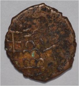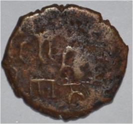 Coin in irregular shape. Obverse Deer on the top right and facing left. Brahmi legend below it. Reverse Tree in railing on the right, six arched hill with umbrella at the centre and triangle headed on the left.
