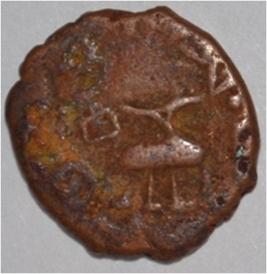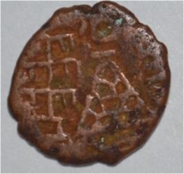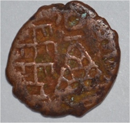 Coin in irregular shape. Obverse Deer at the centre and facing left. Reverse Tree in railing showing three horizontal branches in right, ten arched hill with umbrella at the centre, triangle headed on the left and swastika above.