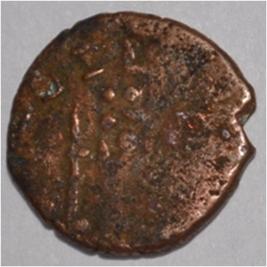 Obverse Male Kartikeya standing and facing. Sakti in right hand and traces of legend on the top right. Reverse Five headed female figure with upraised right hand, left hand on the hip at the centre and tree in railing in left.