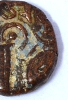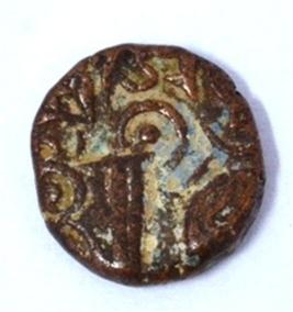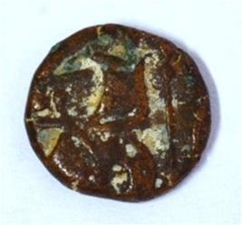 Obverse Man on the horseback and flagpole at the back of the horse. Reverse Couchant bull facing right and traces of legend on the top. Hump at the centre.