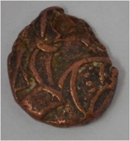 Obverse Horseman on the top holding penon. Reverse Couchant bull facing right and traces of legend on the top.