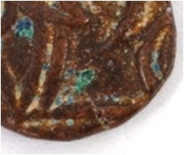 Obverse Horseman on the top holding penon. Reverse Couchant bull facing right and hump on the top left . Traces of legend on the top.