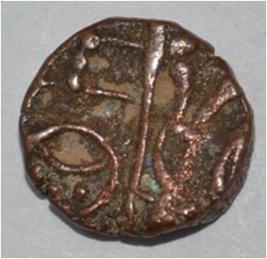 Obverse Horseman on the top left holding flagpole. Reverse Couchant bull facing right and traces of legend on the top.