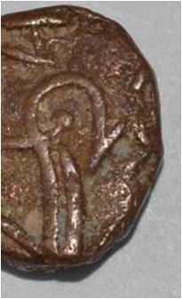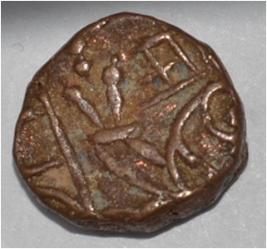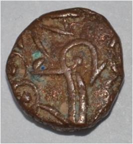 Obverse Horseman on the top holding flagpole. Reverse Couchant bull facing right and hump at the centre. Traces of legend on the top.