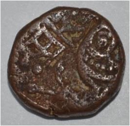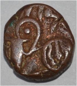 Obverse Horseman at the bottom holding penon and traces of legend on the top right. Reverse Couchant bull facing right and traces of legend on the top.